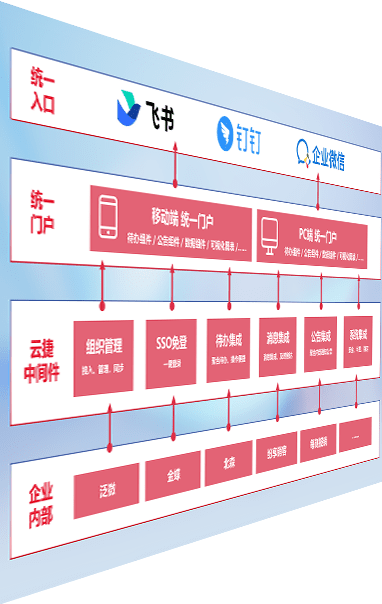 对协作平台提供支持服务,,支持企业应用与协作平台对接,,,,包含组织同步、、、、消息集成、、待办集成等。。支持目前主流的协作平台:钉钉、、、企微和飞书。。